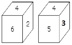 4. ஒரு பகடையின் இரண்டு வெவ்வேறு நிலைகள் கொடுக்கப்பட்டு,பொதுவான பக்கத்தின் நிலைமாறியிருந்தால்,