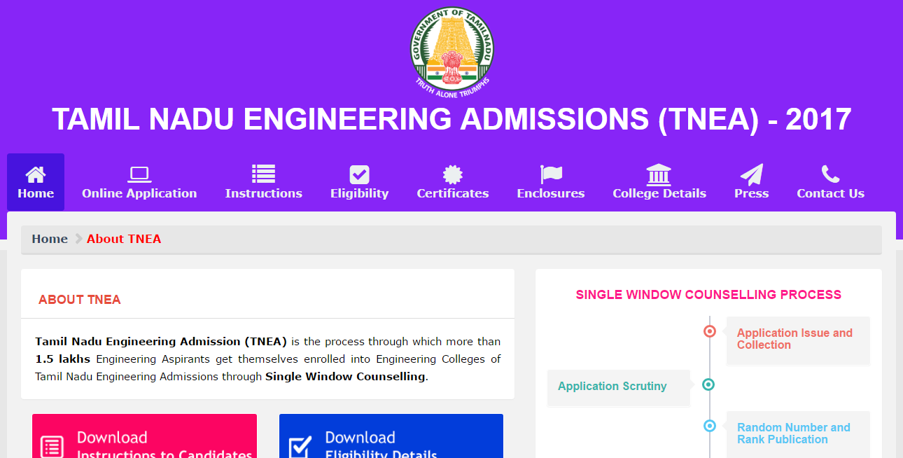 Tamil Nadu Engineering Admission (TNEA) is the process through which more than 1.5 lakhs Engineering Aspirants get themselves enrolled into Engineering Colleges of Tamil Nadu Engineering Admissions through Single Window Counselling.