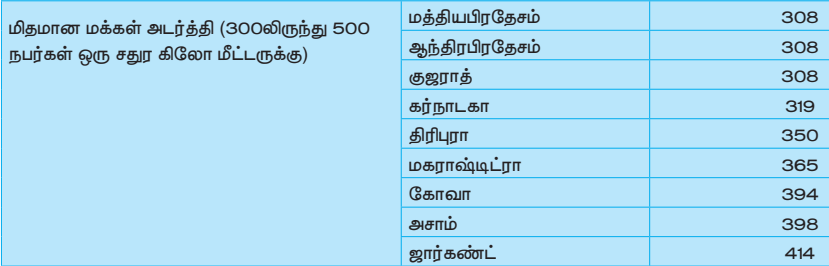 150) மிதமான மக்கள் அடர்த்தி கொண்ட மாநிலங்கள் எவை?