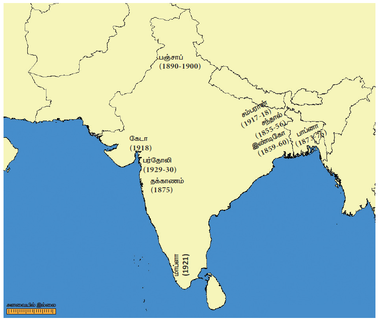 • ஜமின்தார்கள், வட்டிக்காரர்கள், வழக்கறிஞர்கள் ஆகியோர்களால் ஏழை விவசாயிகள் சுரண்டப்பட்டனர்.