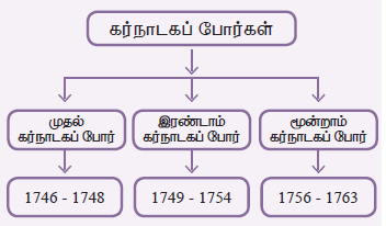 - 18ஆம் நூற்றாண்டில் மூன்று கர்நாடகப் போர்கள் பல்வேறு இந்திய ஆட்சியாளர்களிடையே நடைபெற்றது.
