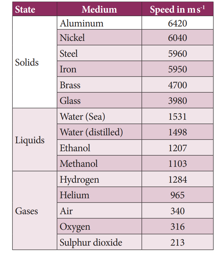 Let the time interval between transmission and reception of ultrasound signal be ‘t’. Then, the speed of sound through sea water is 2d /t = v. This method is called echo-ranging. Sonar technique is used to determine the depth of the sea and to locate underwater hills, valleys, submarine, icebergs etc.
