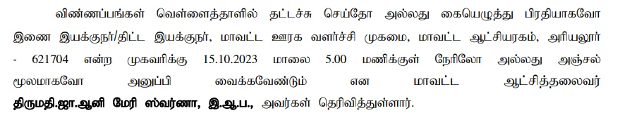 How to Apply: Interested and eligible candidates can apply for the Ariyalur DRDA Recruitment 2023 by following these steps:
