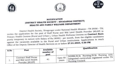 Sivaganga DHS Recruitment 2023 41 Staff Nurse Posts Sivaganga DHS Recruitment 2023 41 Staff Nurse Posts : Department of Public…