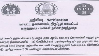 Tiruppur DHS Recruitment 2023 126 Staff Nurse Posts