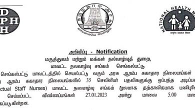 Mayiladuthurai DHS Recruitment 2023 103 Staff Nurse Posts Mayiladuthurai DHS Recruitment 2023 103 Staff Nurse Posts : Department of Public…