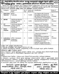 Erode DHS Recruitment 2023 08 DEO & MPHW Posts : The Erode District Health Society (DHS) has announced a recruitment notification for the year 2023, inviting applications from eligible candidates for the positions of 08 Data Entry Operator (DEO), Multi-Purpose Health Worker (MPHW), OT Technician, Radiographer, and Lab Technician Gr-3. This presents a wonderful opportunity for candidates who aspire to work in the healthcare sector and contribute to the well-being of the community.
