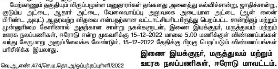 | Organization | Directorate of Medical and Rural Health Services, Erode |