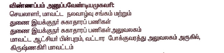 | Organization | Krishnagiri District Health Society, National Health Mission |