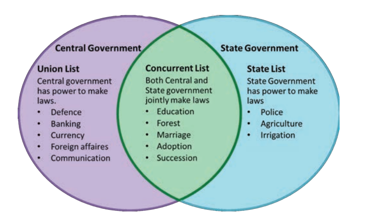 In India, the Parliament shares its law making function and responsibilities of implementation with 28 states as well as 8 union territories