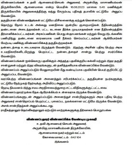 Last date for Submission of Application : 16.08.2023 @ 05.45 PM