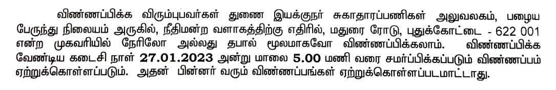 Last Date to Apply For Pudukkottai DHS Recruitment : 27-01-2023