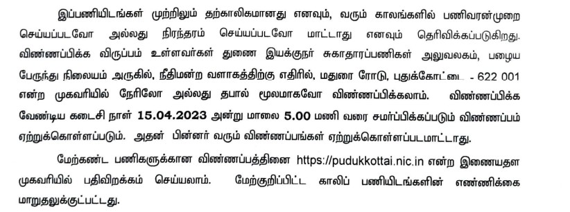 Official Notification: PUDUKOTTAI DHS Recruitment