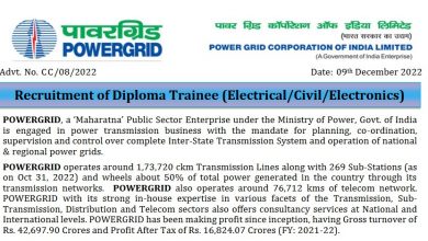 POWERGRID Recruitment 2022 211 Diploma Trainee Posts POWERGRID Recruitment 2022 211 Diploma Trainee Posts: Power Grid Corporation of India Limited…