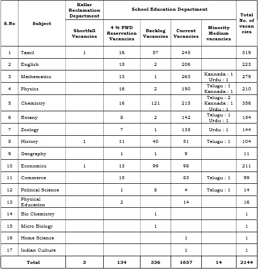 Tamilnadu PG TRB Recruitment 2019 2144 Post Graduate Assistants / Physical Education Directors Posts Notification Released
