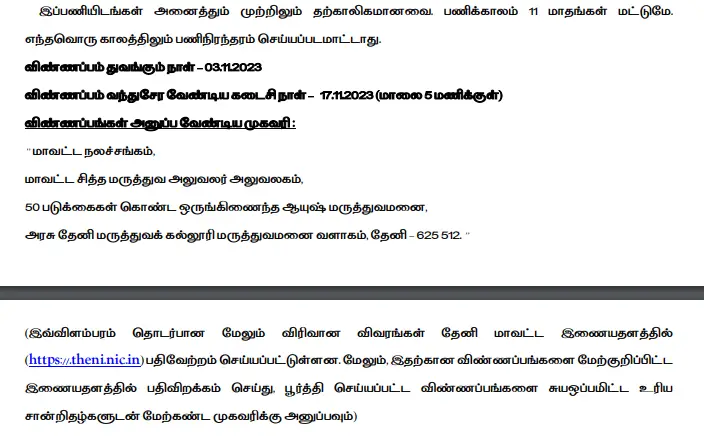 This is your chance to contribute to the healthcare sector and make a difference in your community. Ensure that you meet the eligibility criteria, complete the application process accurately, and meet the application deadline. For more details and updates, visit the official website of Theni District. Don’t miss this opportunity to be a part of Theni DHS and play a vital role in improving public health in the region.