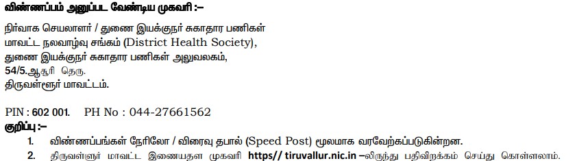 Last Date to Apply For Tiruvallur DHS Recruitment : 09-01-2023