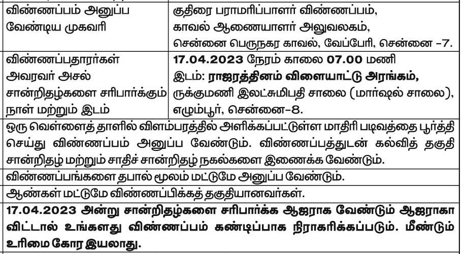 TN Police Horse Maintainer Recruitment 2023 10 Vacancies