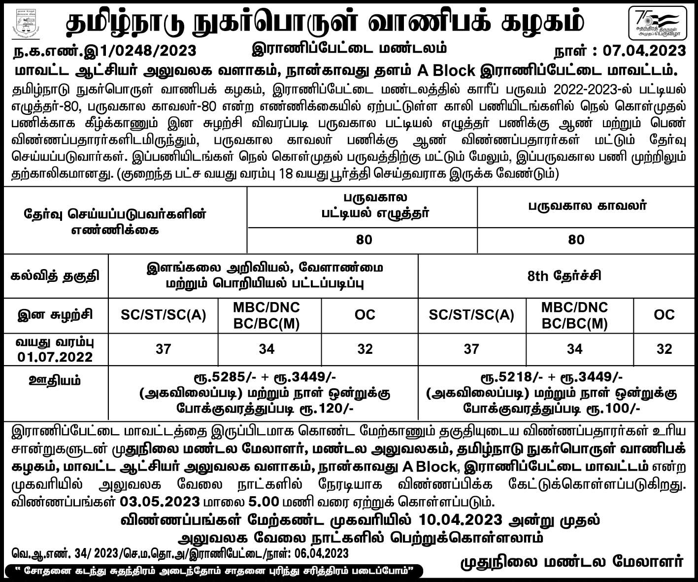 TNCSC Ranipet Recruitment 2023 160 Seasonal Bill Clerk Posts