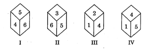 - கனசதுரத்தின் நான்கு வரைபடங்கள் கீழே கொடுக்கபட்டுள்ளன. எந்த எண் 3 இன் எதிர்பக்கமாக இருக்க முடியும்.