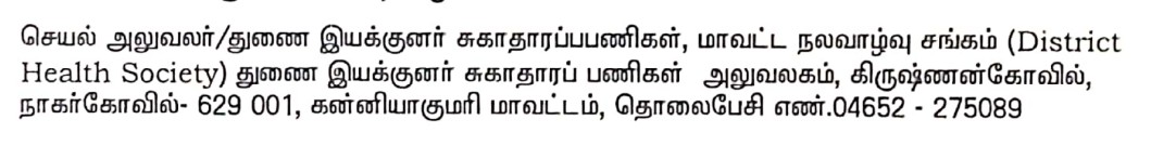 | Organization | Kanyakumari District Health Society, National Health Mission |
