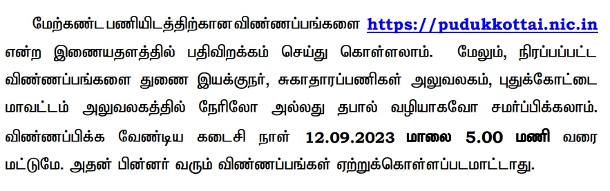 How to Apply: Candidates interested in applying for the Pudukkottai DHS Security Guard Recruitment 2023 should follow these steps: