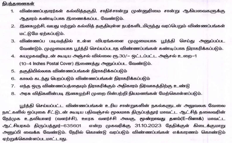 - Official Notification and Application Form: TNRD Tirupathur Recruitment Notification